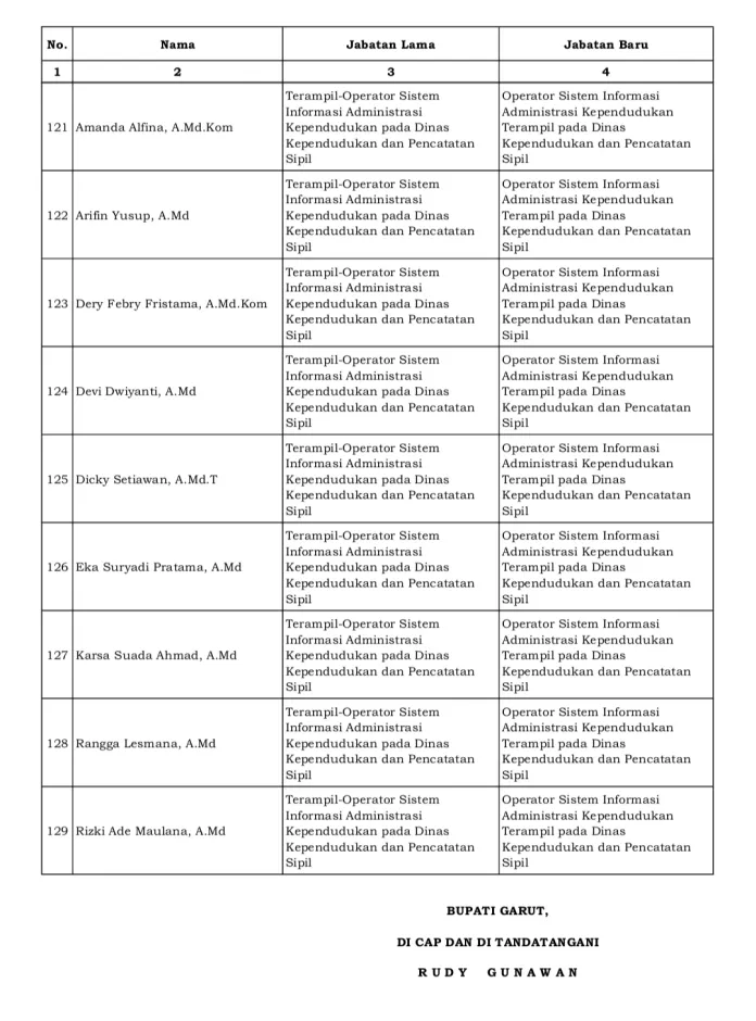 Berikut nama – nama pegawai Pemkab Garut yang hari ini dilantik :