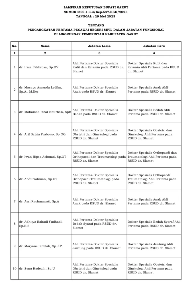 KILASGARUTNEWS.id|Berdasarkan Surat Keputusan Bupati Garut No 800.1.3.3 / kep. 548 – BKD / 2023 dan Surat Keputusan Bupati Garut No 800.1.3.3 / kep. 547 – BKD / 2023.