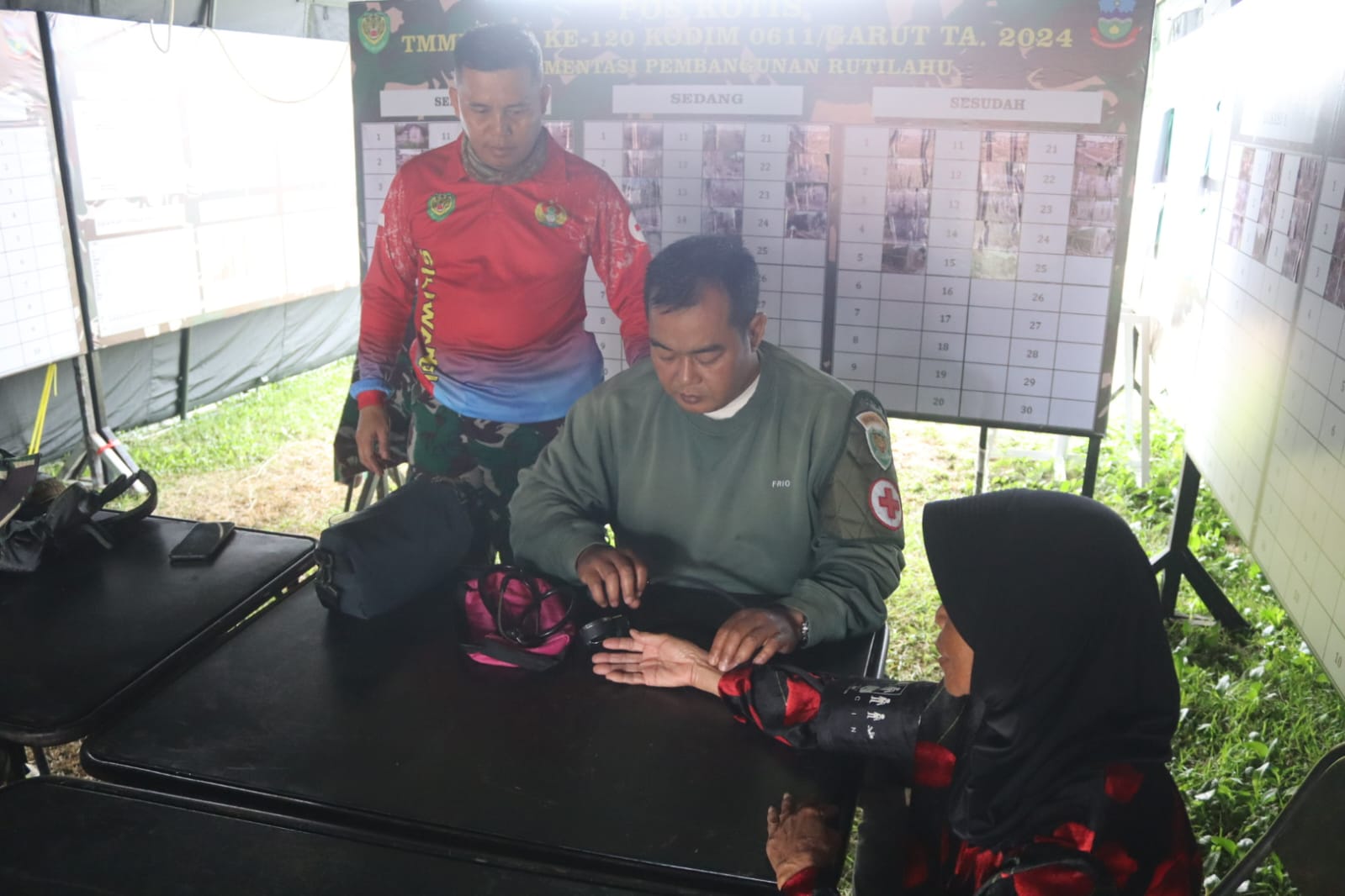 Sejak pagi hari, Posko TMMD ke-120 Kodim 0611/Garut didatangi oleh warga dengan antusiasme tinggi. Tidak hanya orang dewasa, anak-anak hingga lansia turut serta dalam kegiatan ini. Mereka rela mengantri demi mendapatkan pelayanan kesehatan gratis yang diberikan oleh personel TNI dari tim kesehatan TMMD Kodim 0611/Garut.