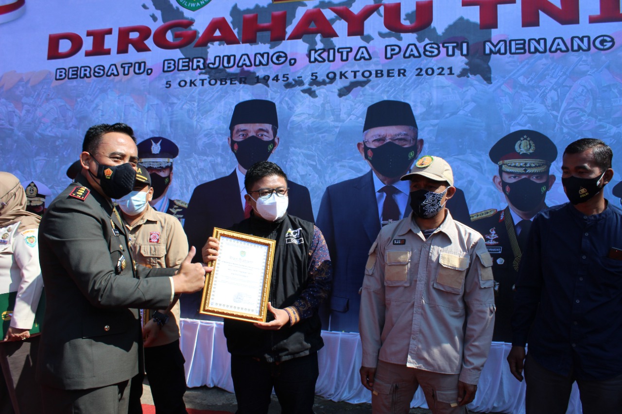 “Sebagai tanda apresiasi kepada beberapa lembaga kemanusiaan, kami memberikan penghargaan di hari ulang tahun TNI ke 76, diantaranya ACT, Tagana,Rebana dll. Karena sudah berdedikasi dan berkontribusi membantu memerangai Wabah Covid-19 di Garut.
