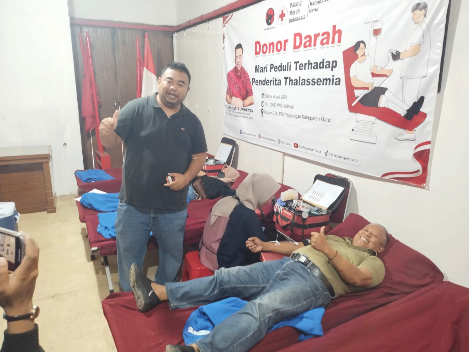 Terkait dengan kegiatan donor darah yang dilaksanakan,ketua DPC PDI -Perjuangan kabupaten Garut, Yudha Puja Turnawan mengatakan, ini mendadak ya,kemarin awalnya tanggal 5 Juli hari Jumat pagi saya mendapat wa dari ibu Hani warga kampung Bojongsari ,desa Cikedokan, kecamatan Bayongbong yang anaknya satu tahun menderita thalasemia kemudian telat transfusi darahnya,ia kesulitan karena stok di PMI semua golongan darah kosong”kata Yudha