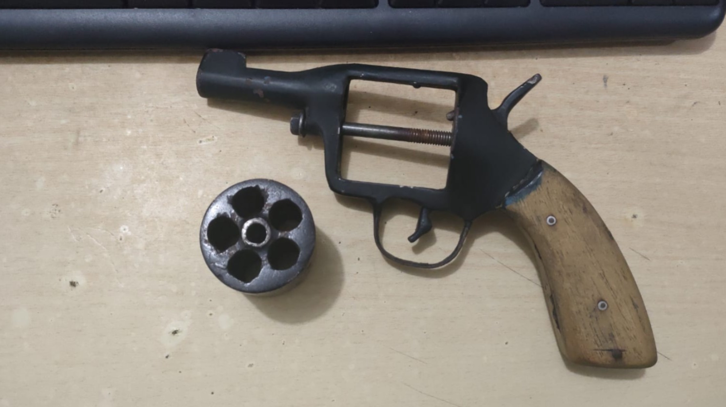 Saat tiba di Tempat Kejadian Perkara (TKP), petugas langsung mengamankan pelaku dan menyita barang bukti berupa satu pucuk revolver rakitan beserta tiga butir peluru.
