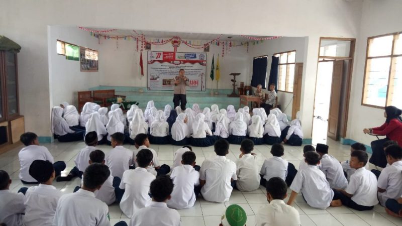 Jajaran anggota Polsek Karangpawitan Polres Garut laksanakan kegiatan pembinaan terhadap pelajar SMP Muhammadiyah Karangpawitan dalam rangka rangkaian kegiatan memeriahkan HUT RI ke 77 Tahun 2022 dengan pemateri pembinaan oleh Panit Propam Dani Kristiyan