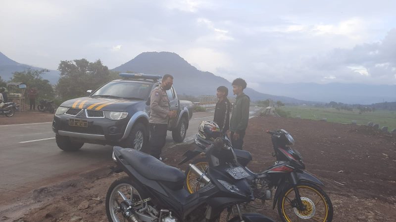 “Kita secara rutin tiap sore selalu berpatroli di tempat ini untuk meminimalisir trek trekan atau balapan yang dapat meresahkan serta mengganggu pengguna jalan lain”jelas Ipda Asep Umah.