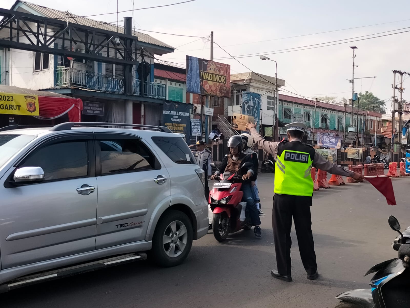 KILASGARUTNEWS.id|Polsek Malangbong Polres Garut terus lakukan pemantauan dan pengaturan lalu lintas pada Rabu (26/4/23) pukul 08.00 Wib.