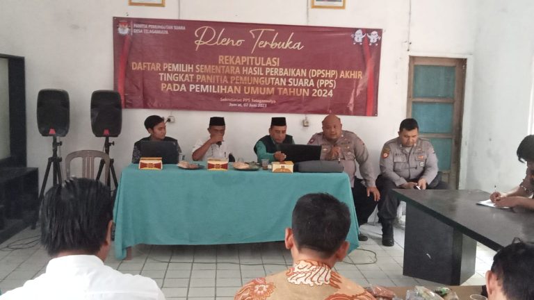 KILASGARUTNEWS.id|Bhabinkamtibmas Polsek Telagasari Polres Karawang Bripka Aries Kusariadi beserta Polisi RW Bripka Deni hadiri Rapat Pleno Terbuka Daftar Pemilih Sementara Hasil Perbaikan (DPSHP) pada Pemilu 2024 tingkat Desa Talagamulya, Kecamatan Telagasari. Sabtu (3/6/2023).