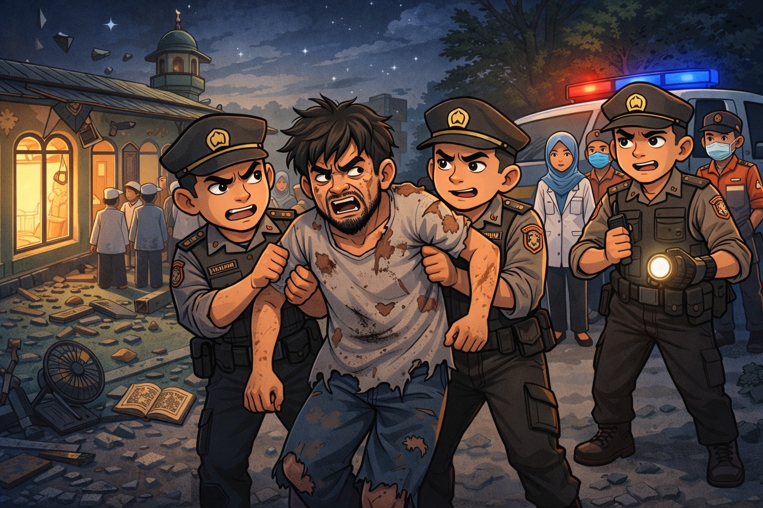 KILASGARUTNEWS.id|Jajaran Polsek Wanaraja Polres Garut mengamankan seorang pria yang diduga mengalami gangguan jiwa setelah merusak fasilitas masjid saat pelaksanaan salat tarawih di wilayah Kecamatan Wanaraja, Kabupaten Garut, Sabtu malam (14/03/2026).