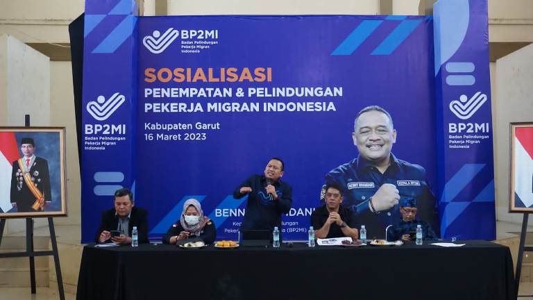 KILASGARUTNEWS.id|Badan Pelindungan Pekerja Migran Indonesia (BP2MI) menggelar acara Sosialisasi Penempatan dan Pelindungan Pekerja Migran Indonesia (PMI) yang dilaksanakan di Gedung Islamic Center, Kecamatan Garut Kota, Kabupaten Garut, Kamis (16/03/2023).