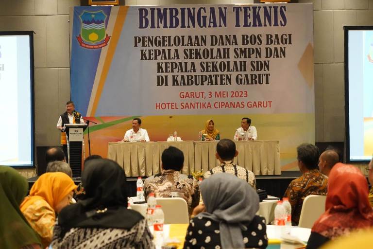 KILASGARUTNEWS.id|Sebanyak 400 kepala Sekolah Dasar (SD) Negeri dan Sekolah Menengah Pertama (SMP) Negeri se-Kabupaten Garut mengikuti Bimbingan Teknis (Bimtek) Pengelolaan Dana BOS (Biaya Operasional Sekolah) yang diselenggarakan oleh Dinas Pendidikan Kabupaten Garut bekerjasama dengan Badan Pengawasan Keuangan dan Pembangunan (BPKP) Provinsi Jawa Barat.