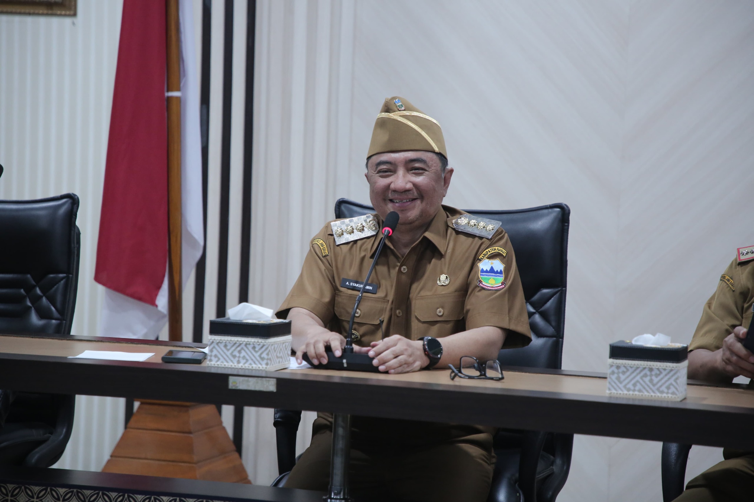 Bupati Garut, Abdusy Syakur Amin, memberikan pengarahan dan koordinasi setiap lingkup Satuan Kerja Perangkat Daerah (SKPD), Pejabat Pimpinan Tinggi Pratama (PPTP), Kepala Bagian (Kabag), dan Camat se-Kabupaten Garut, Senin (3/3/2025), di Ruang Rapat Sekretariat Daerah Kabupaten Garut.