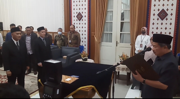 KILASGARUTNEWS|Bertempat di Pamengkang,Pendopo, jalan Kabupaten, Kelurahan Paminggir,Kecamatan Garut Kota Kabupaten Garut, Jawa barat. Bupati Garut Rudy Gunawan telah melantik dan mengambil sumpah jabatan kepada Tiga orang direktur Perumda BPR Garut Masa Bakti 2022 – 2027pada Rabu (23/11/2022).