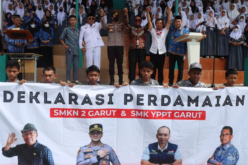 Deklarasi damai bertempat di SMKN 2 Garut Jl. Suherman No 90, Kecamatan Tarogong Kaler, Kabupaten Garut. Kamis (10/11/2022).