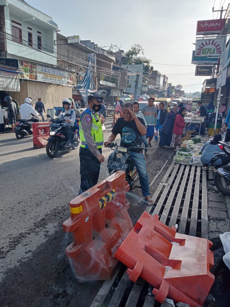 KILASGARUTNEWS|Dalam rangka memberikan pelayanan yang prima guna menciptakan kondisi Keamanan Keselamatan Ketertiban Kelancaran Lalu lintas (Kamseltibcarlantas) Personil Polsek Karangpawitan Polres Garut melaksanakan pengaturan lalu lintas pada titik-titik yang ramai pengguna jalan tepatnya di persimpangan tiga/pasar Godog Ciparay, sejak pukul 06.30 WIB sampai dengan pukul 08.00 WIB, Senin (24/10/2022).