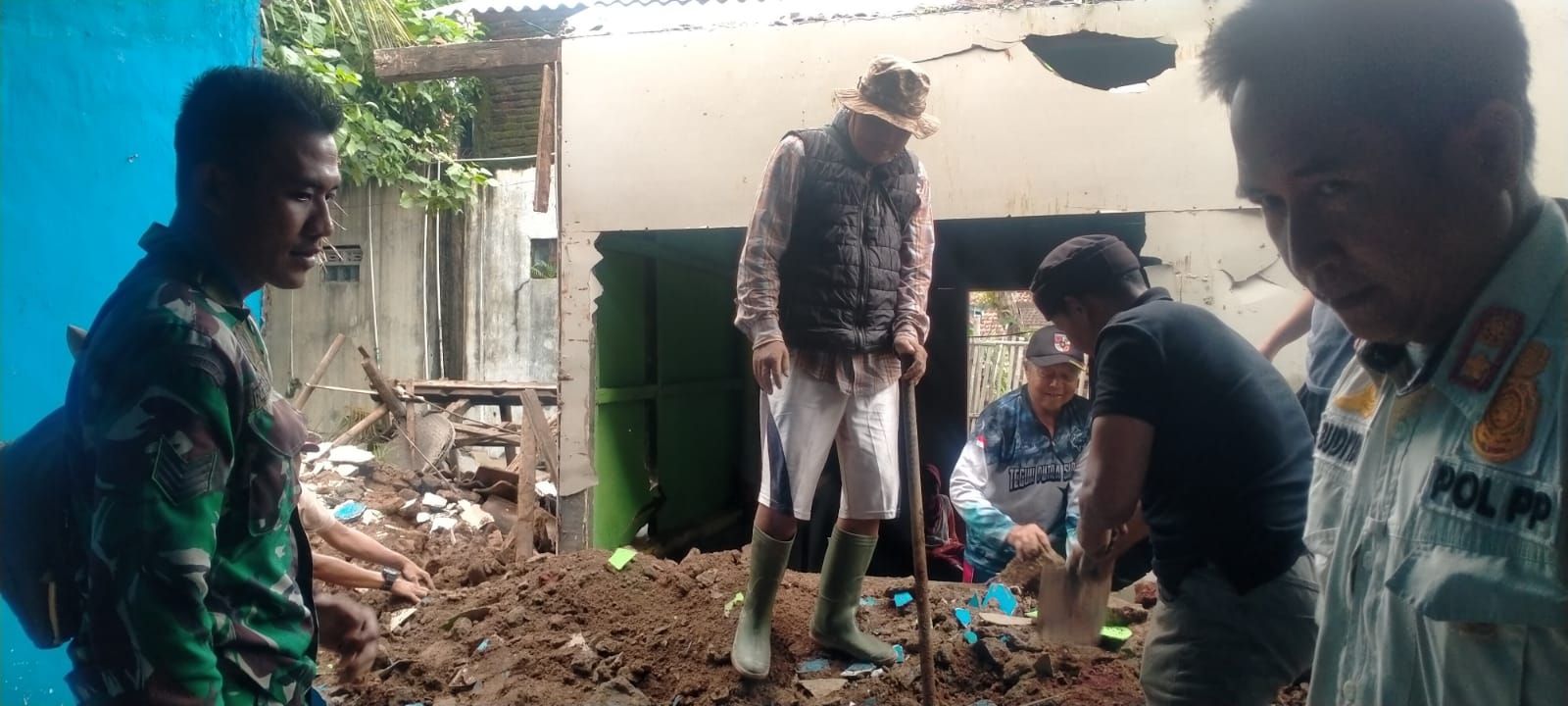 Anggota Koramil 1119/Pameungpeuk bantu puing-puing rumah warga yang roboh, (Foto:Istimewa).