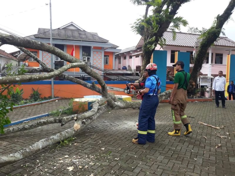 Disdamkar UPT Bungbulang menerima laporan dari Kepala Seksi Ketentraman dan Ketertiban dan langsung meluncur ke lokasi. Saat tiba di lokasi, petugas langsung melakukan pemotongan pohon dengan menggunakan gergaji mesin.