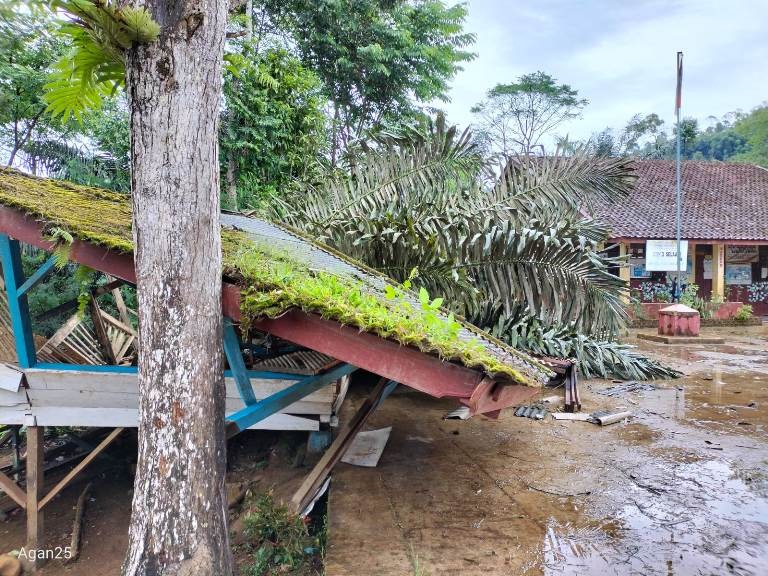 Dua Bangunan Hancur Tertimpa Pohon di Talegong Salah Satunya Milik SDN III Selaawi