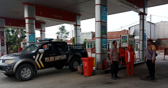 KILASGARUTNEWS.id|Patroli Prekat Polsek Banyusari Polres Karawang Polda Jawa Barat Aiptu Juanda bersama Aipda Abdul Rahman mendatangi SPBU Jayamukti yang berada diwilayah Kecamatan Banyusari, Kabupaten Karawang untuk mengantisipasi terjadinya gangguan kamtibmas guna menciptakan situasi kamtibmas yang kondusif di kewilayahannya.