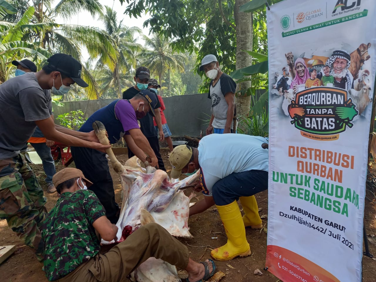 “Alhamdulillah selama 4 hari dari tanggal 10 Dzulhijjah/ 20 Juli 2021 sampai hari ketiga Tasyrik yaitu 23 Juli 2021 tim Global Qurban ACT Garut telah mendistribusikan 13 ekor sapi mulai dari ujung Garut Selatan hingga Garut Utara” Ucap Kepala Cabang ACT Garut Mochamad Dani Ramdani