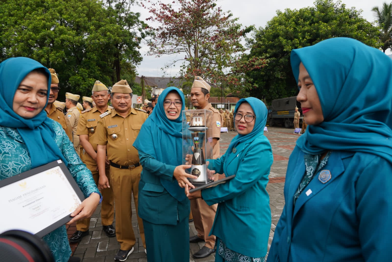 Penyerahan penghargaan tersebut diserahkan langsung oleh Bupati Garut Rudy Gunawan, pada apel pagi dilapang Setda Kabupaten Garut, Jawa Barat. Senin (27/3/2023).