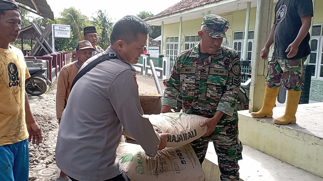 KILASGARUTNEWS.id|Polsek Pameungpeuk lakukan Jum’at Berkah berupa bantuan bahan bangunan yaitu Semen. Jum’at (21/7/2023).