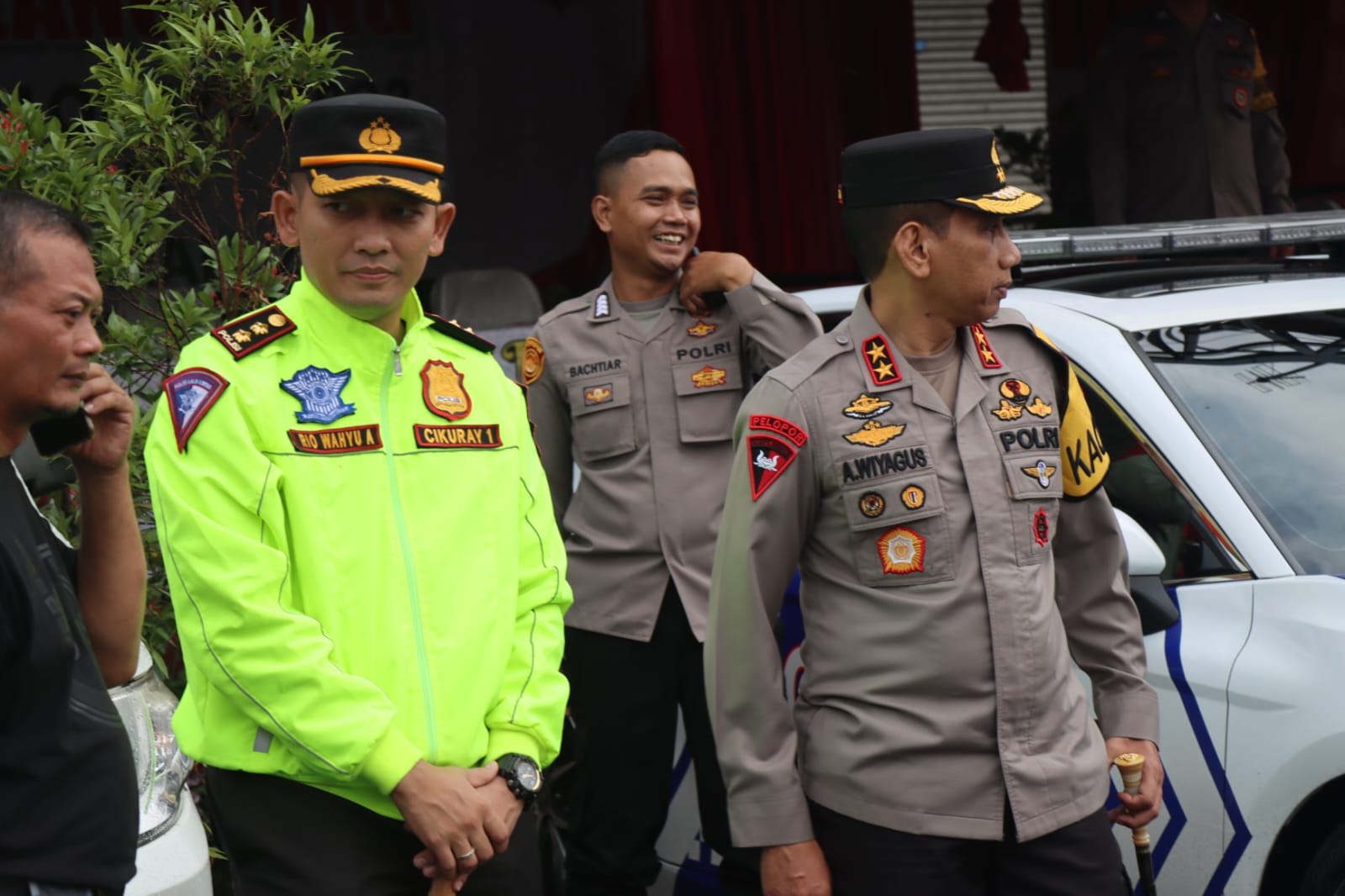 Kapolda Jabar pada kegiatan pemantauan tersebut disamping Kapolres Garut, Waka Polres Garut, Kasat Lantas dan Kapolsek Malangbong beserta Anggota.