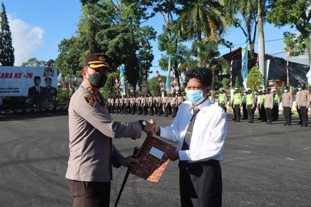 Kilas Garut News-Bertempat di Lapang Apel Mapolres Garut Jl. Jenderal Sudirman No. 204, Kelurahan Suci Kaler, Kecamatan Karangpawitan, Kabupaten Garut, Jawa Barat. Kapolres Garut AKBP Wirdhanto Hadicaksono memberikan Penghargaan Kepada Anggota Yang Berprestasi Tingkat Polres Garut.Jum’at (08/07/2022).