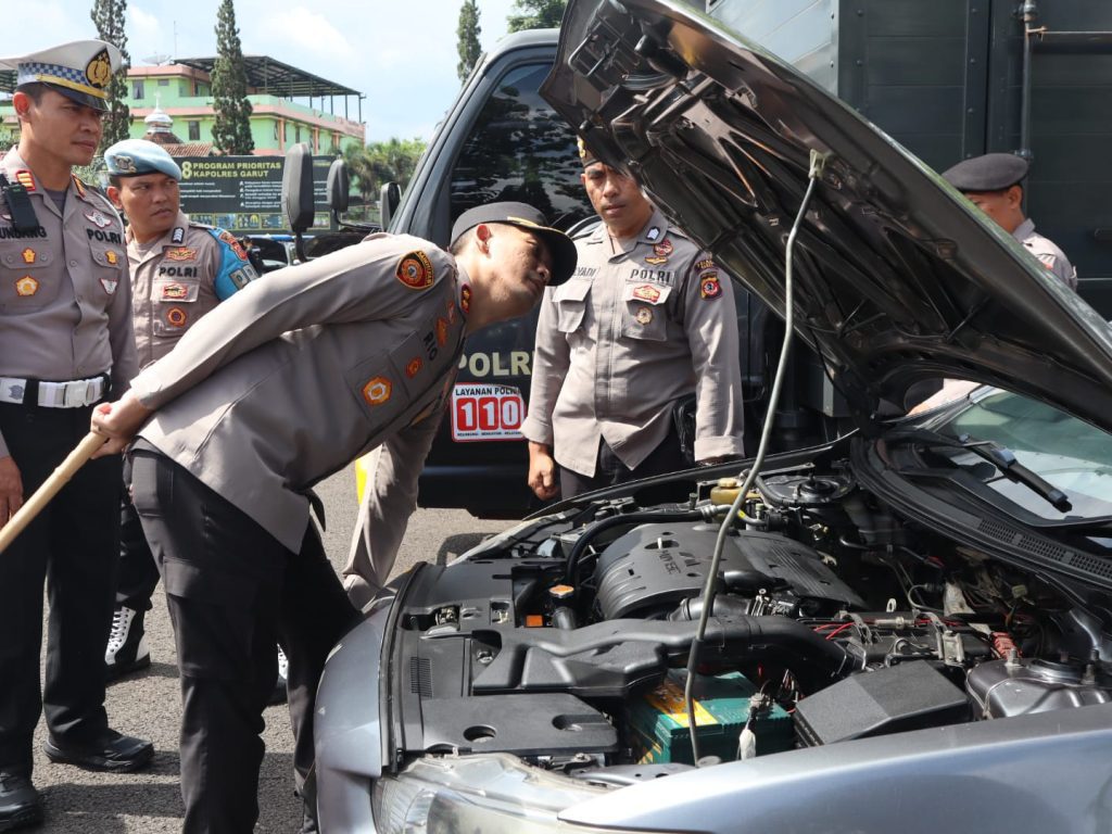 Kapolres Garut mengatakan pengecekan kendaraan dinas ini untuk mengetahui kondisi kendaraan operasional jelang Operasi Ketupat Lodaya 2023.