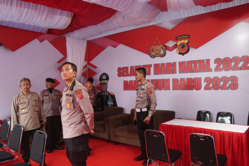 KILASGARUTNEWS.id|Kapolres Garut AKBP Wirdhanto Hadicaksono beserta jajaran melakukan pengecekan Pos pengamanan Natal dan Tahun Baru dalam Operasi Lilin Lodaya Tahun 2022 di Garut Trade Center (GTC) yang berada di Jalan Nasional III. Selasa (20/12/2022).
