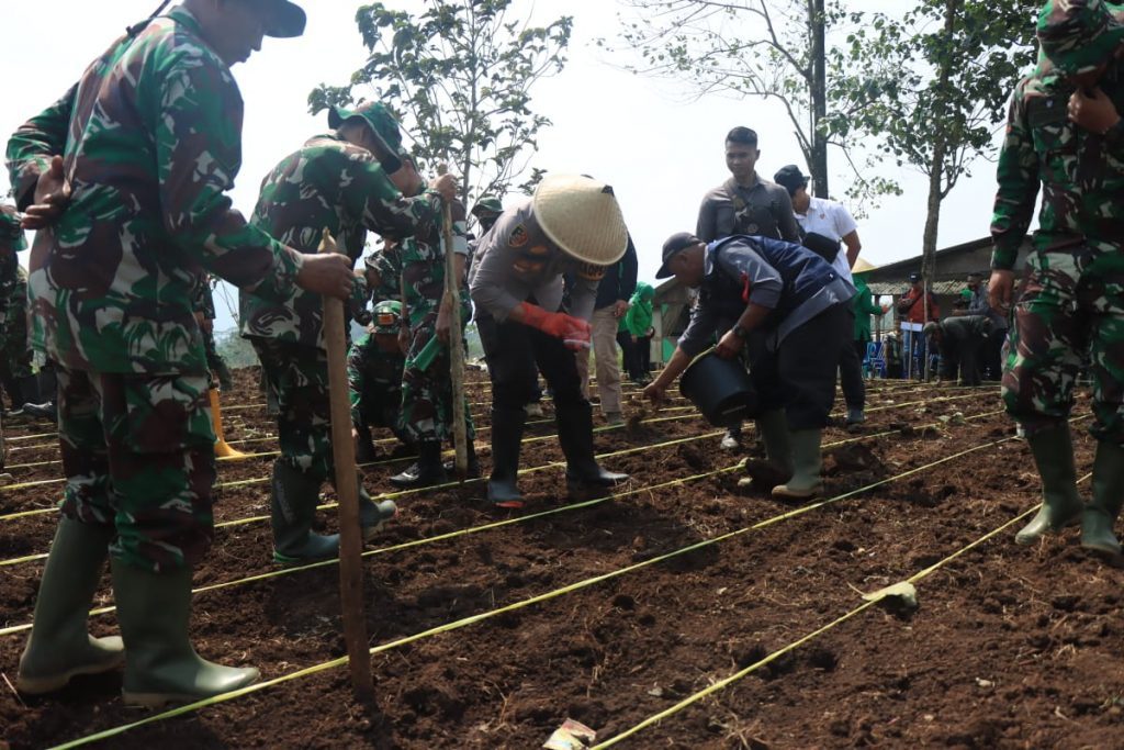 Kilas Garut News-Kapolres Garut AKBP Wirdhanto Hadicaksono menghadiri kegiatan penanaman jagung serentak di Wilayah Kodam III/Siliwangi di Kampung Selagedang, Desa Cibatu, Kecamatan Cibatu, Kabupaten Garut, Jawa Barat. Rabu (3/8/2022).