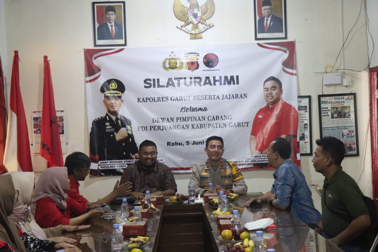 KIKASGARUTNEWS.id|Kapolres Garut AKBP Rohman Yonky Dilatha, S.I.K., M.Si, beserta jajaran kunjungi sekretariat Dewan Pimpinan Cabang (DPC) Partai Demokrasi Indonesia Perjuangan (PDI P)yang bertempat di Jalan Merdeka, Kecamatan Tarogong kidul, Kabupaten Garut.