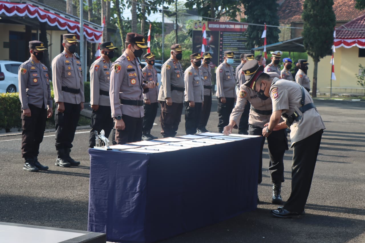 Kilas Garut News-Bertempat di Mapolres Garut Jl.Jendral Sudirman no 204 Kel.Suci Kaler Kab.Garut , Kapolres Garut AKBP Wirdhanto Hadicaksono, S.I.K, M.Si., pimpin upacara serah terima jabatan Kapolsek jajaran Polres Garut. Kamis (23/6/2022).