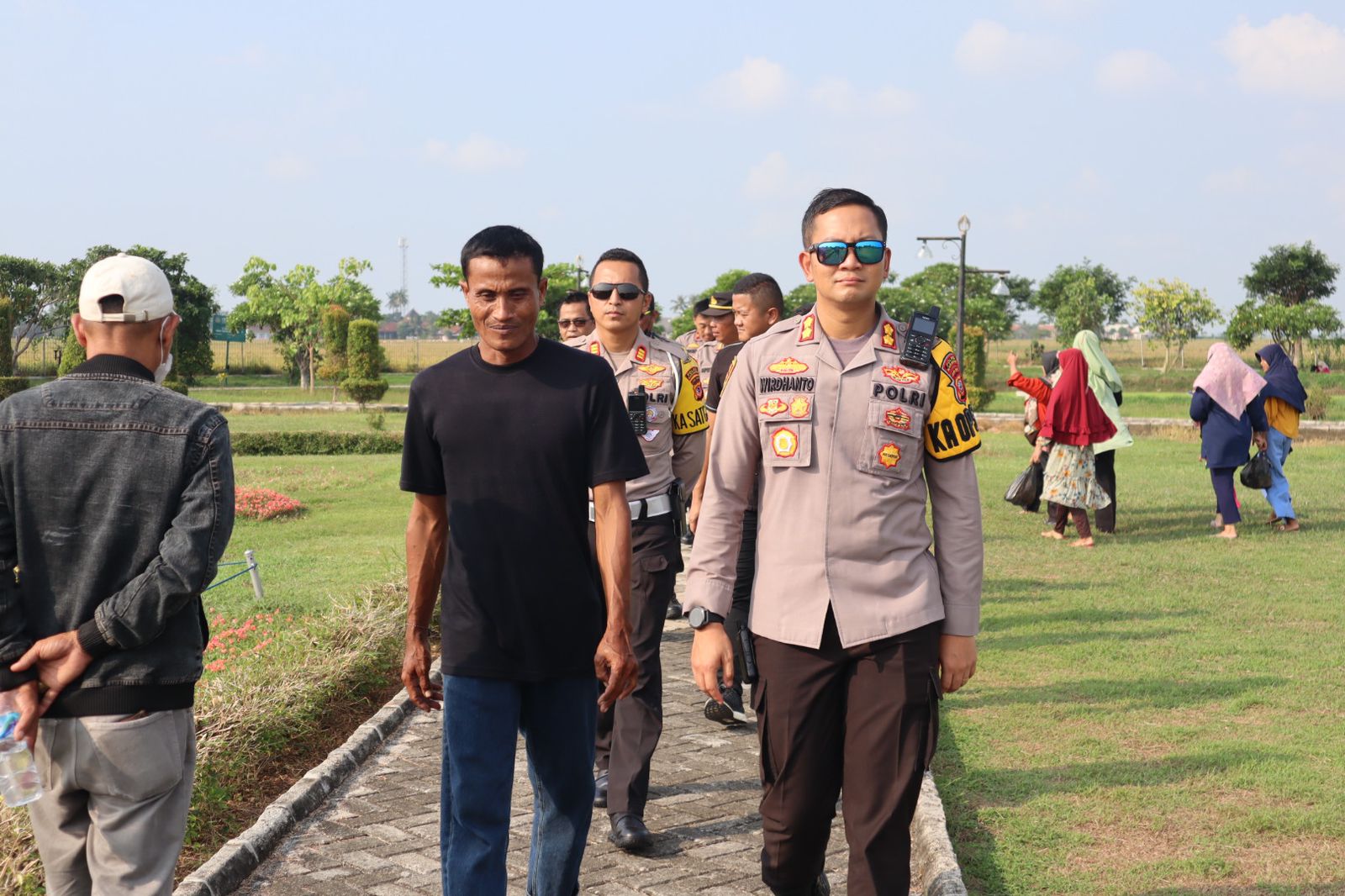 Kapolres Karawang AKBP Wirdhanto Hadicaksono langsung melakukan pengecekan tempat wisata Candi jiwa, Saat pengecekan dan pemantauan, Kapolres Karawang disambut hangat masyarakat dan bahkan pedagang yang berjualan di sekitar candi jiwa.
