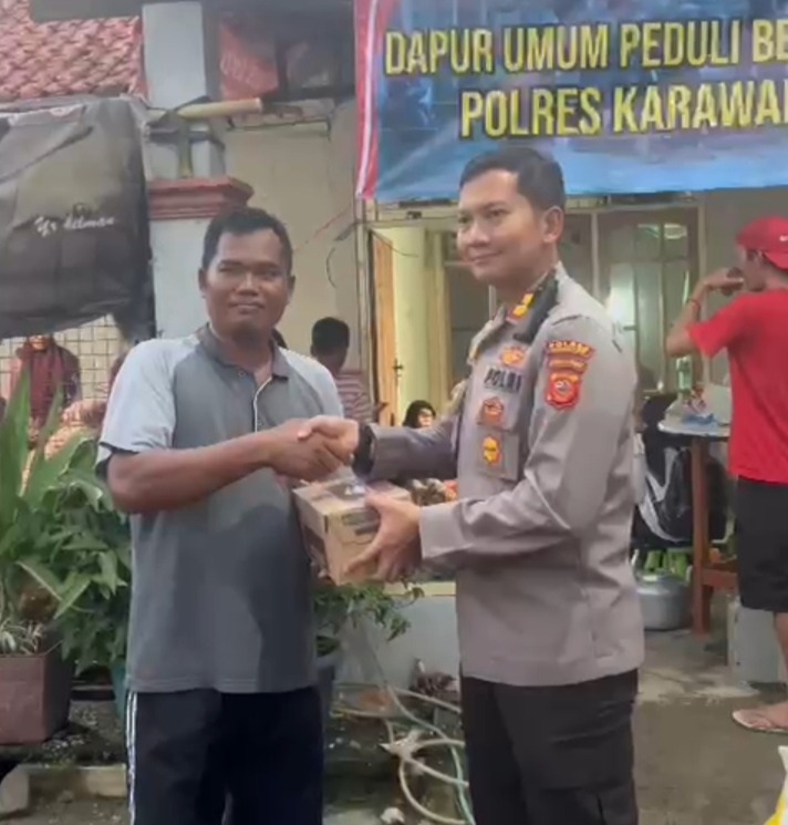Kapolres Karawang AKBP Wirdhanto Hadicaksono bersama jajarannya dalam peduli kemanusiaan ini turun langsung ke lapangan untuk membantu meringankan beban masyarakat yang terdampak banjir dengan menyiapkan Posko Polres Bencana Alam berupa dapur umum.