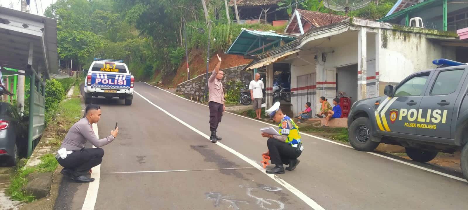 KILASGARUTNEWS.id|Polsek Pakenjeng Polres Garut cek tkp kejadian kecelakaan antara kendaraan sepeda motor Suzuki dan kendaraan Mitsubishi Truck Box di Jalan Raya Pakenjeng – Bungbulang tepatnya Kampung Ciwalen Desa Depok Kecamatan Pakenjeng Kabupaten Garut. Sabtu sore (02/03/2024)