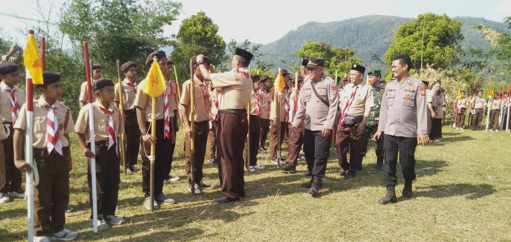 KILASGARUTNEWS.id|Kapolsek Singajaya H.Anas Nasrudin bersama Bhabinkamtibmas Polsek Singajaya Polres Garut hadiri kegiatan pembukaan jambore Pramuka kwaran ranting Kecamatan Peundeuy Kabupaten Garut. Rabu (09/08/2023).