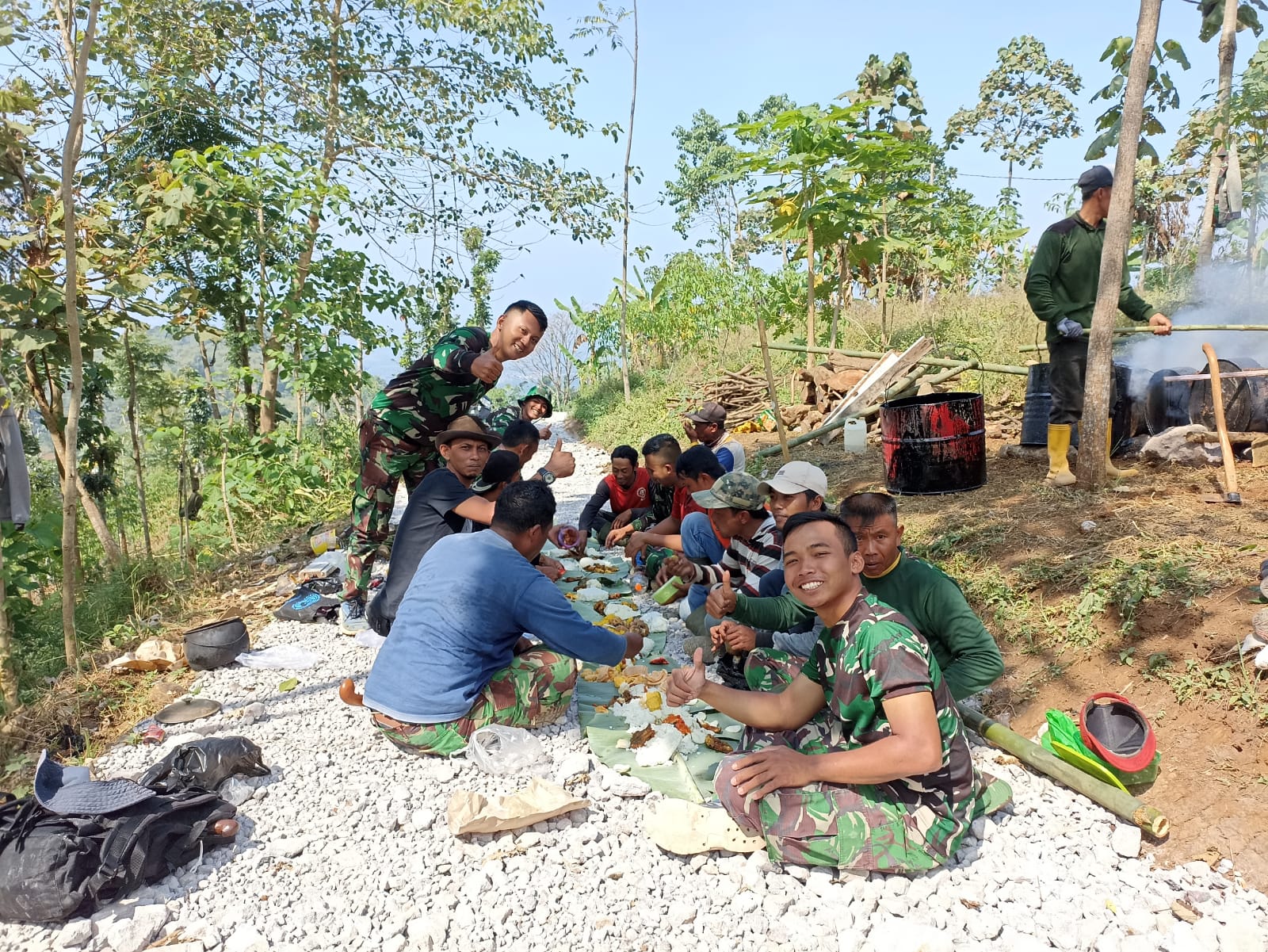 Kilas Garut News-Melalui Program TNI Manunggal Membangun Desa TMMD Reguler ke 114 terjalin kebersamaan dan kehangatan antara TNI dan rakyat. Hal itu menunjukan bahwa kehadiran TMMD Reguler 114 di Desa Ciwangi kec. Bl. Limbangan diterima dengan baik oleh masyarakatnya, Senin, 01/08/2022.\