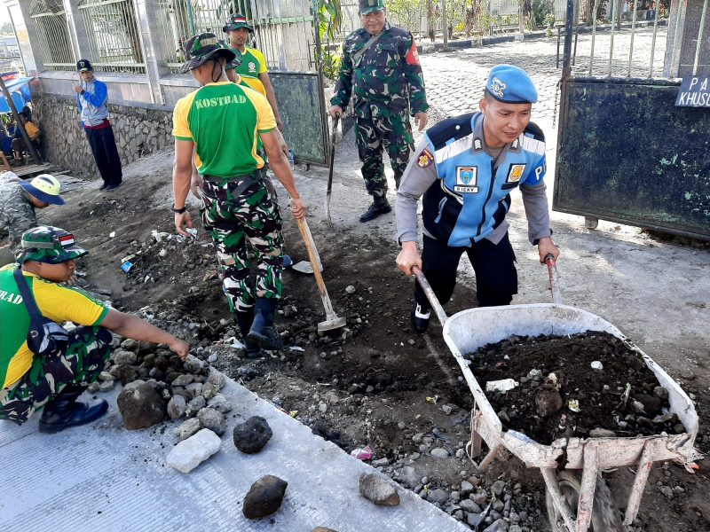 Anggota Polsek Cisurupan bersama anggota Yonif 303 , Koramil Cisurupan , Muspika Cisurupan dan warga sekitar bergotong royong melakukan kerja bakti demi mewujudkan Masjid Besar Cisurupan yang bersih dan asri.