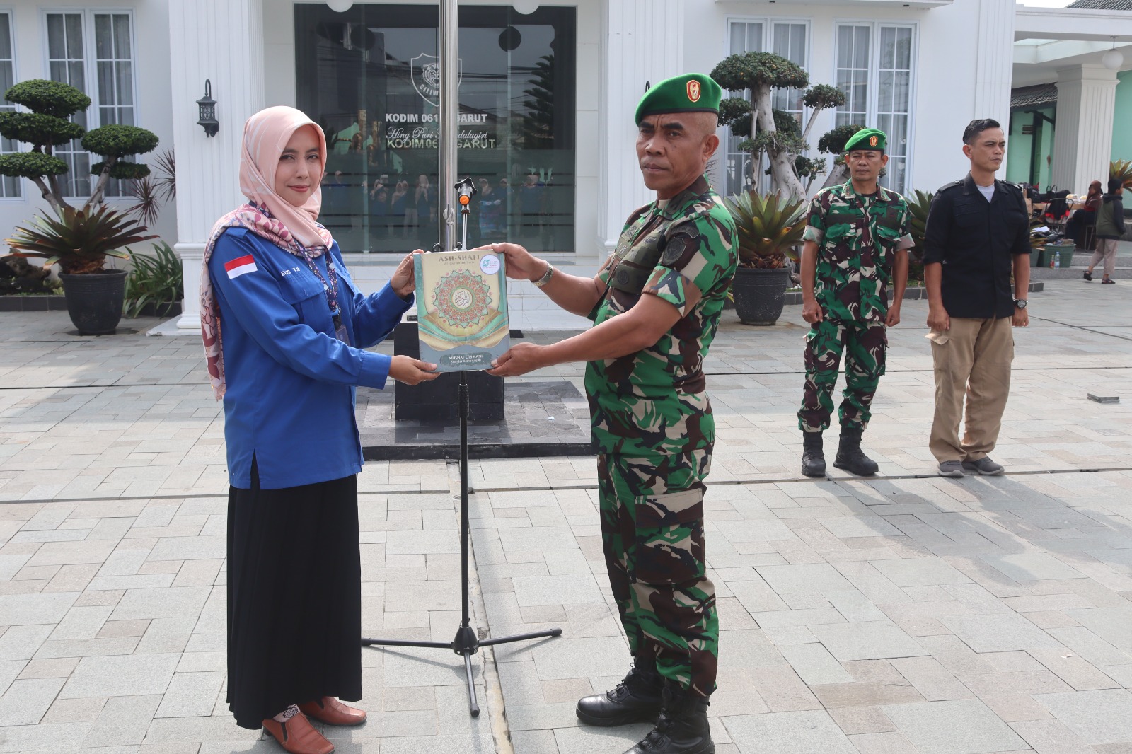 Kasdim 0611/Grt Mayor Inf Jaja saat menerima 1000 Al-Quran dari GSJ kabupaten Bekasi