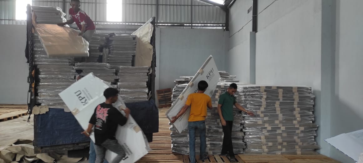 ” Barang yang datang hari ini berupa Bilik Suara dan Kotak Suara” kata Dian Hasanudin.