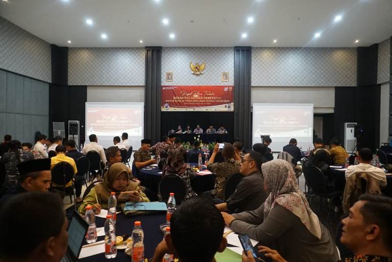 KILASGARUTNEWS.id|Komisi Pemilihan Umum (KPU) Kabupaten Garut menggelar acara Rapat Pleno Terbuka Rekapitulasi dan Penetapan Daftar Pemilih Tetap (DPT) Pemilihan Umum (Pemilu) Tahun 2024 untuk Kabupaten Garut, yang dilaksanakan di Ballroom Hotel Harmoni, Jalan Cipanas Baru, Kecamatan Tarogong Kaler, Kabupaten Garut, Rabu (21/06/2023).
