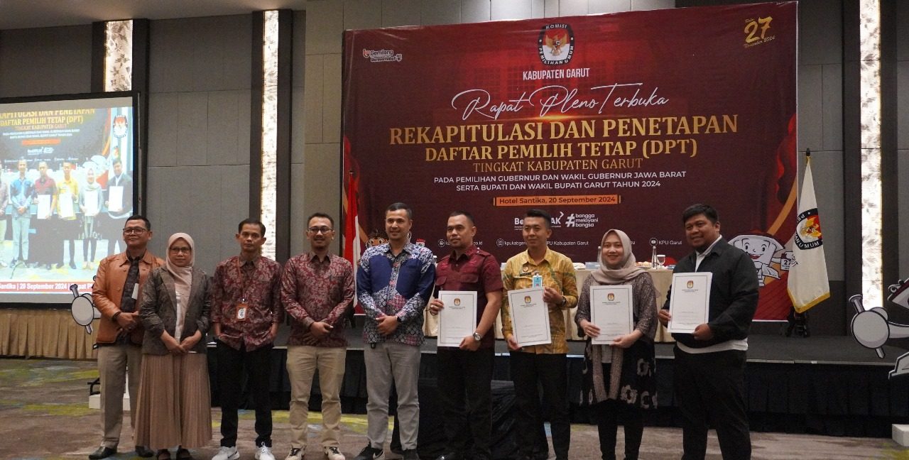 KILASGARUTNEWS.id|Komisi Pemilihan Umum (KPU) Kabupaten Garut resmi menetapkan Daftar Pemilih Tetap (DPT) untuk Pemilihan Gubernur dan Wakil Gubernur Jawa Barat serta Bupati dan Wakil Bupati Garut Tahun 2024. Penetapan ini dilakukan dalam Rapat Pleno Terbuka di Ballroom Hotel Santika, Kecamatan Tarogong Kaler, Jum’at (20/9/2024). Berdasarkan hasil rapat tersebut, jumlah pemilih yang tercatat dalam DPT mencapai 2.005.168 jiwa.