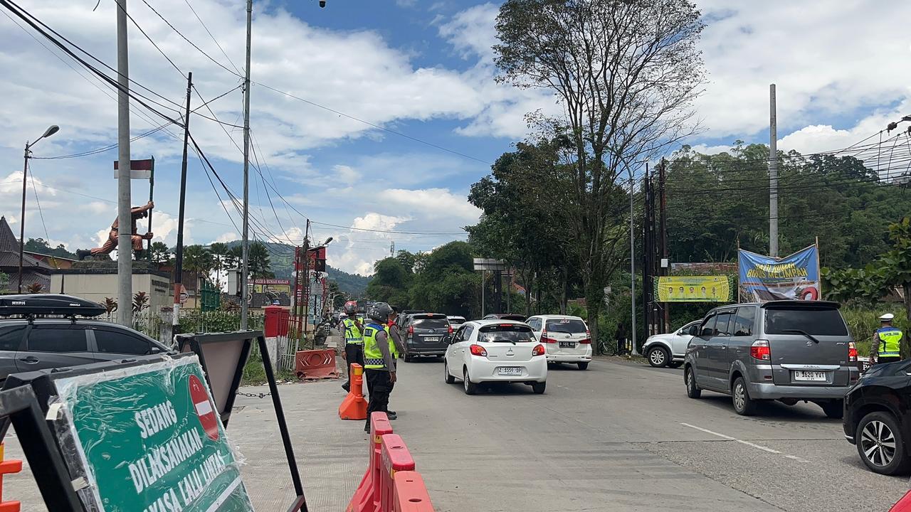 KILASGARUTNEWS.id|Jumlah wisatawan yang berkunjung ke kawasan wisata Cipanas, Kabupaten Garut, mengalami peningkatan signifikan sejak dimulainya Operasi Lilin Lodaya 2025. Untuk mengantisipasi kepadatan arus lalu lintas, Polres Garut melakukan rekayasa lalu lintas berupa sistem satu arah (one way).