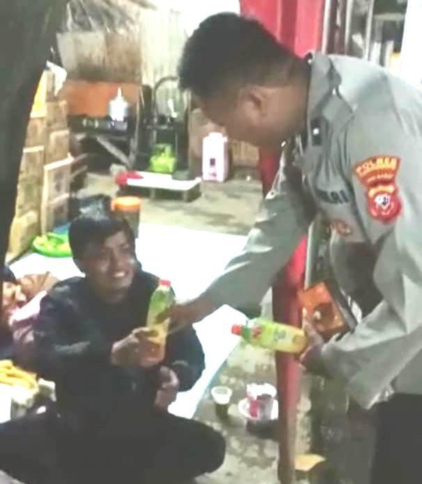 Dalam kesempatan tersebut Personil Pos Pam terpadu Polsek Klari Anggota BA SPKT II Aipda Irwan Firmansyah sedang memberikan makanan dan minuman secara gratis kepada pemudik satu keluarga yang sedang istirahat di halaman mapolsek Klari.m pada Sabtu dini hari ( 29/04/2023 ) sekira pukul 02.00 Wib