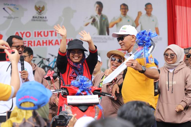 Ia menerangkan dalam kegiatan jalan sehat ini ada beberapa _doorprize_ yang sediakan oleh panitia seperti motor, sepeda, kulkas, dengan hadiah utamanya yakni paket umroh.