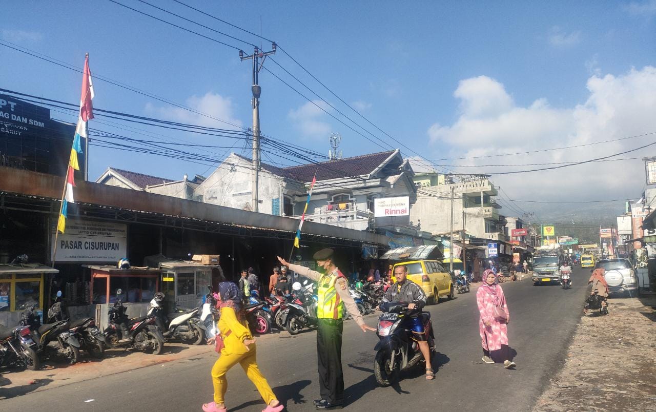 Kegiatan Pengaturan Arus Lalu Lintas di laksanakan pada titik rawan keramaian dan kemacetan di Kecamatan Cisurupan.