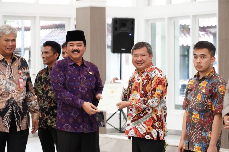 KILASGARUTNEWS.id|Menteri Agraria dan Tata Ruang (ATR)/ Kepala Badan Pertanahan Nasional (BPN), Hadi Tjahjanto menyerahkan Sertipikat Hak Kepemilikan Bersama, Tanah Instansi Pemerintah, TNI dan Polri, berlangsung di Gedung Pendopo, Kecamatan Garut Kota, Kabupaten Garut, Jum’at (23/6/2023).