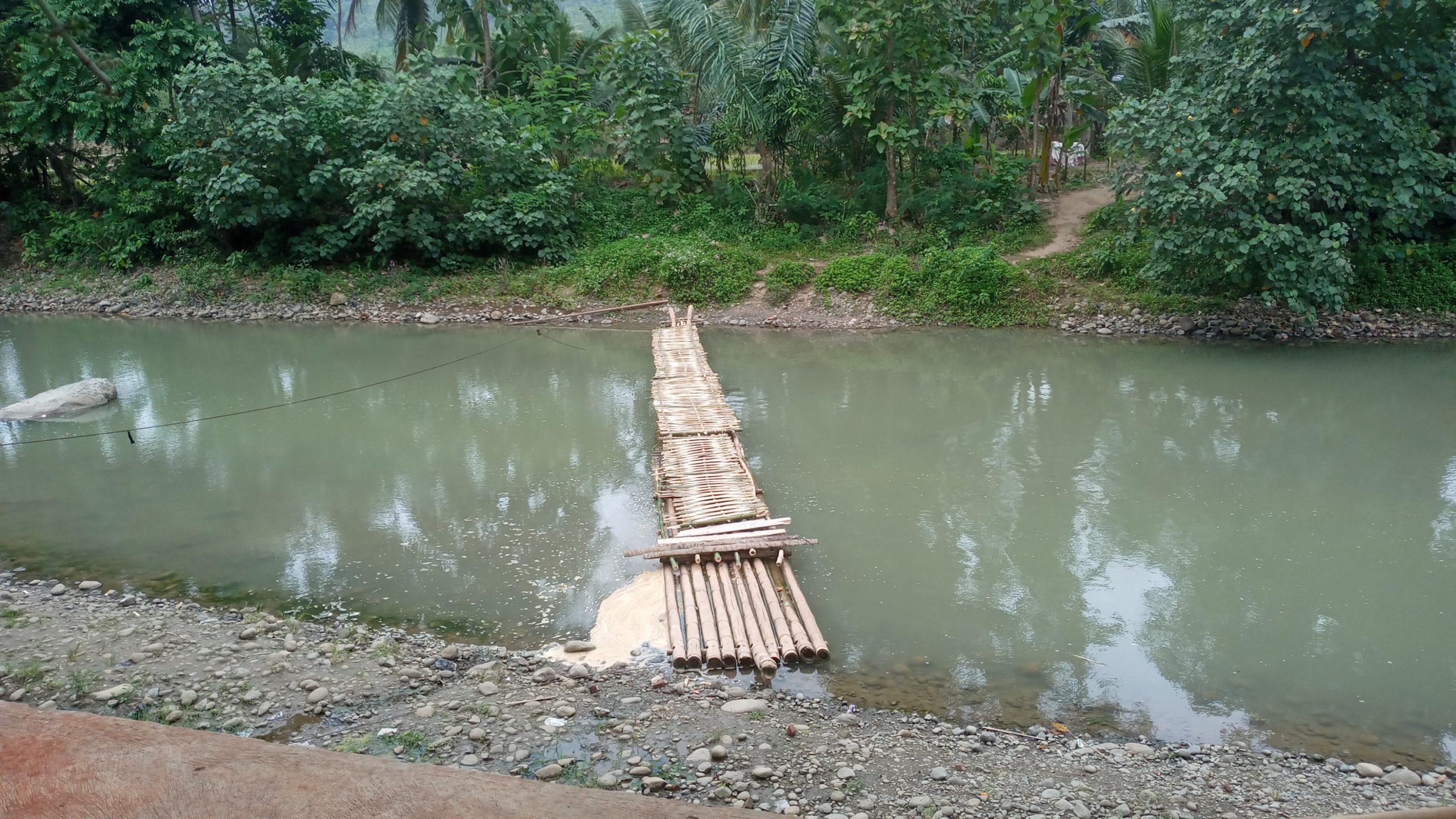 “kami berharap segera dibangunkannya kembali jembatan untuk warga supaya bisa beraktivitas seperti sedia kala, apalagi jalan ini sebagai penghubung kedua desa artinya banyak warga dan anak-anak sekolah melalui jalan ini, ya kami seadanya memakai jalan darurat memakai bambu sepanjang 52 meter seadanya sungguh miris memang’ ucapnya