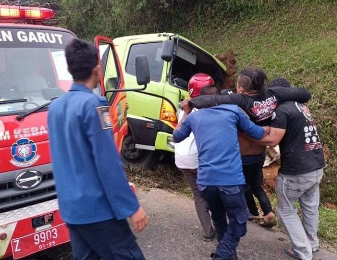 KILASGARUTNEWS.id|Kejadian tak terduga menimpa sebuah mobil fuso dengan Plat B 9812 UFU dilokasi Jl. Raya Cikajang-Pameungpeuk (Batu Tumpang), Desa Tanjung, Kecamatan Banjarwangi. Peristiwa ini terjadi pada hari Kamis (27/07/2023) sekitar pukul 17:20 WIB.