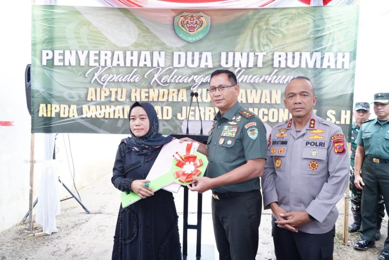 Dalam sambutannya, Mayjen TNI Kosasih menyampaikan duka cita mendalam sekaligus penguatan moral kepada keluarga yang ditinggalkan. Pangdam secara simbolis menyerahkan kunci rumah kepada keluarga anggota Polri, serta satu unit sepeda motor yang diwakili oleh Danyon Arhanud 3/YBY kepada perwakilan masyarakat atas nama Yana Mulyana, yang diterima langsung oleh sang istri.