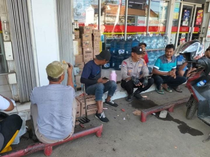 KILASGARUTNEWS.id|Panit Binmas Aiptu Agus ST, ngariung Kamtibmas Polsek Wanaraja bersama pemuda di toko Alfamart Kp. Samanggen Desa Wanajaya Kecamatan Wanaraja guna menciptakan situasi yang kondusif di wilayah hukum Polsek Wanaraja Polres Garut. Sejak pukul 14.00 WIB sampai selesai.Rabu (32/5/2023).